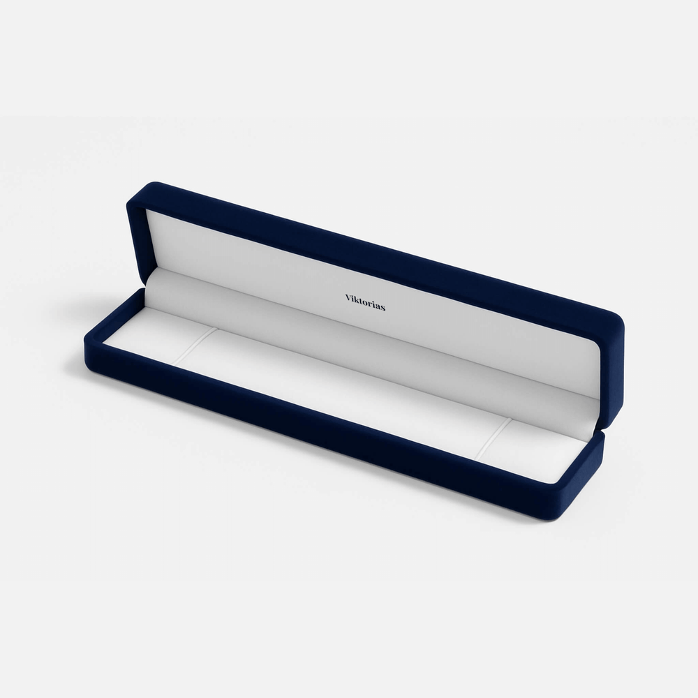 Elegant box wrapped in deep blue velvet – perfect for gifting or storing your Viktorias pieces.